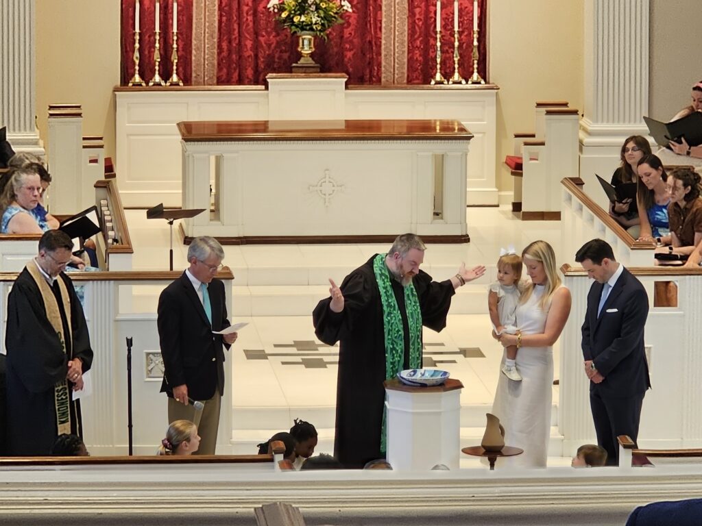 The sacrament of baptism is the sign and seal of the covenant God has made with us in Jesus Christ. Our Christian identity begins in baptism, and in this sacrament we are marked forever as Christ’s own. Baptism assures us of our cleansing from sin, of our participation in Christ’s death and resurrection, and of our welcome into the household of God. We gladly celebrate the baptism of infants, youth and adults in our worship services. For more information, please contact Ashytn Bratt, Executive Admin Assistant. We invite parents to join us for a discussion of Baptism prior to setting a date.